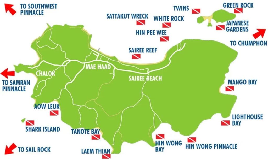 2 granite pinnacles and boulders with a vibrant coral garden and schools of small fish chilling over and amongst the coral. This is the largest dive site on Koh Tao with a high diversity of local marine life, so no matter how many times you do this dive site you will see a different world. This is one of my favourite Koh Tao dive sites and is the best night dive in Koh Tao.