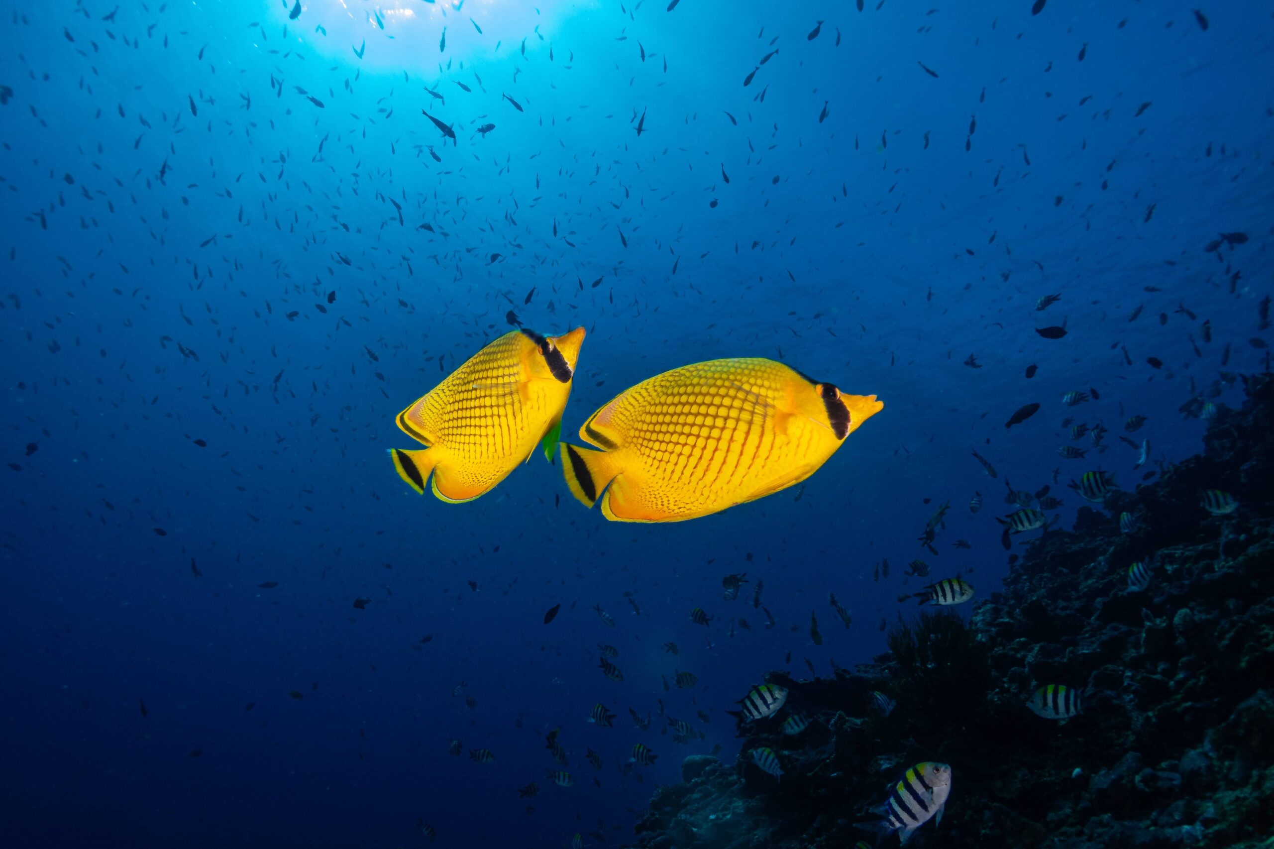 • Schools of fusiliers zooming past like underwater traffic