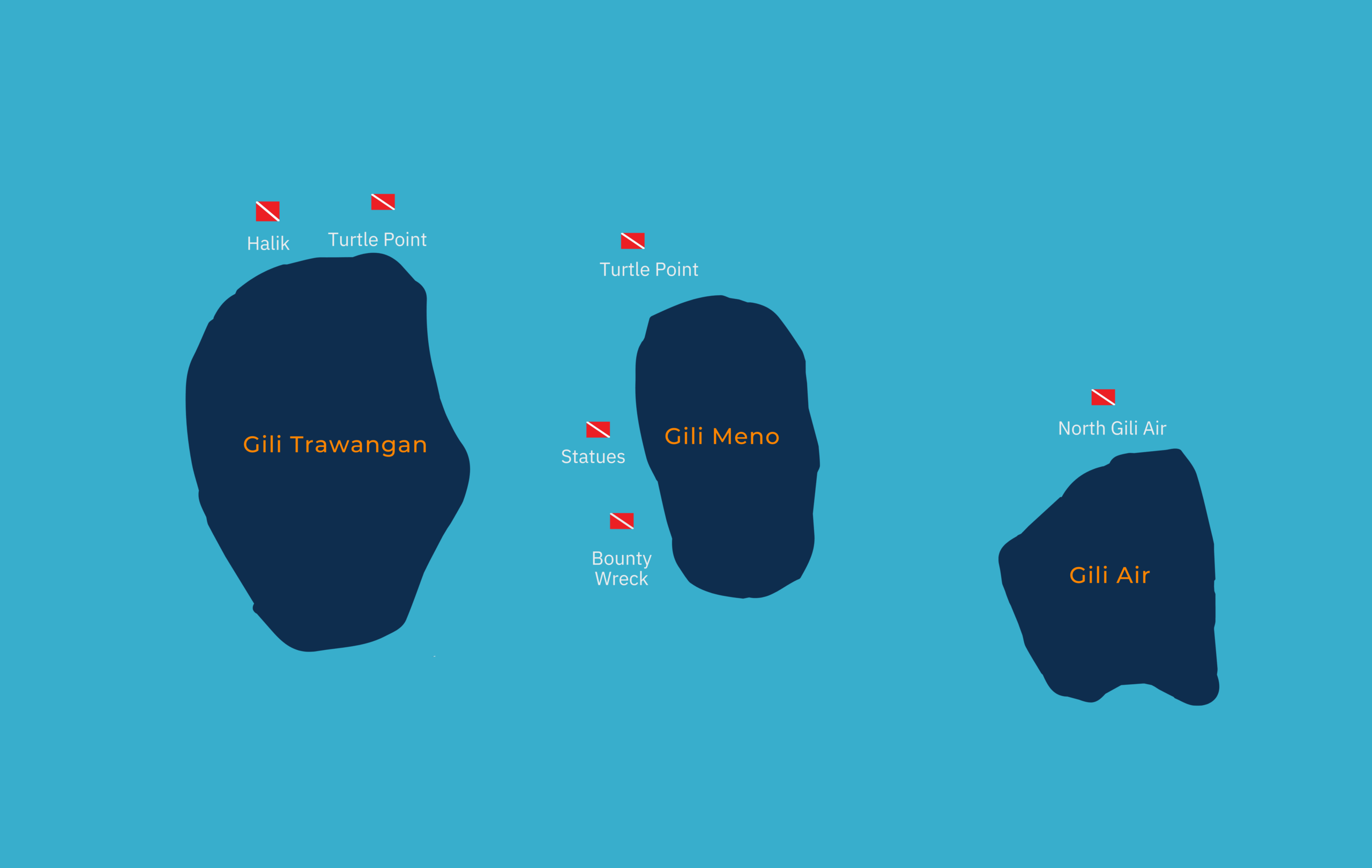- Always watch the currents. The currents around the Gilis can become really strong, so please do not swim too far away from the shore or your boat and keep an eye on the island, so that you are not drifting too far.