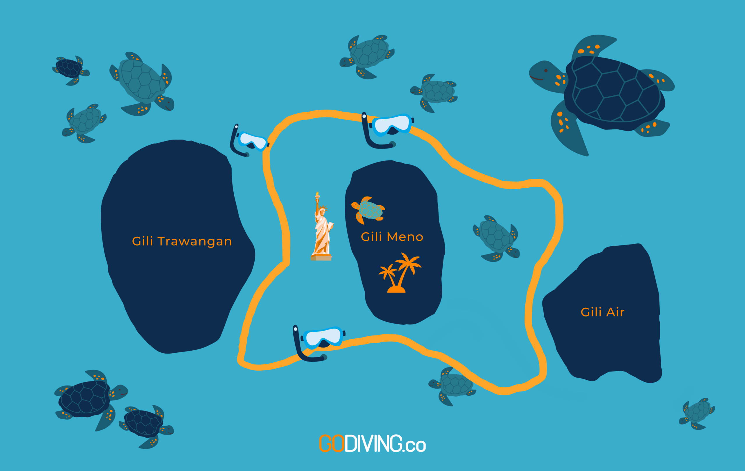 If you’re feeling fancy you can hop on a boat tour to take you around Gili Meno and Air as well. You can visit the famous statues of Gili Meno or swim with turtles around Gili Air.