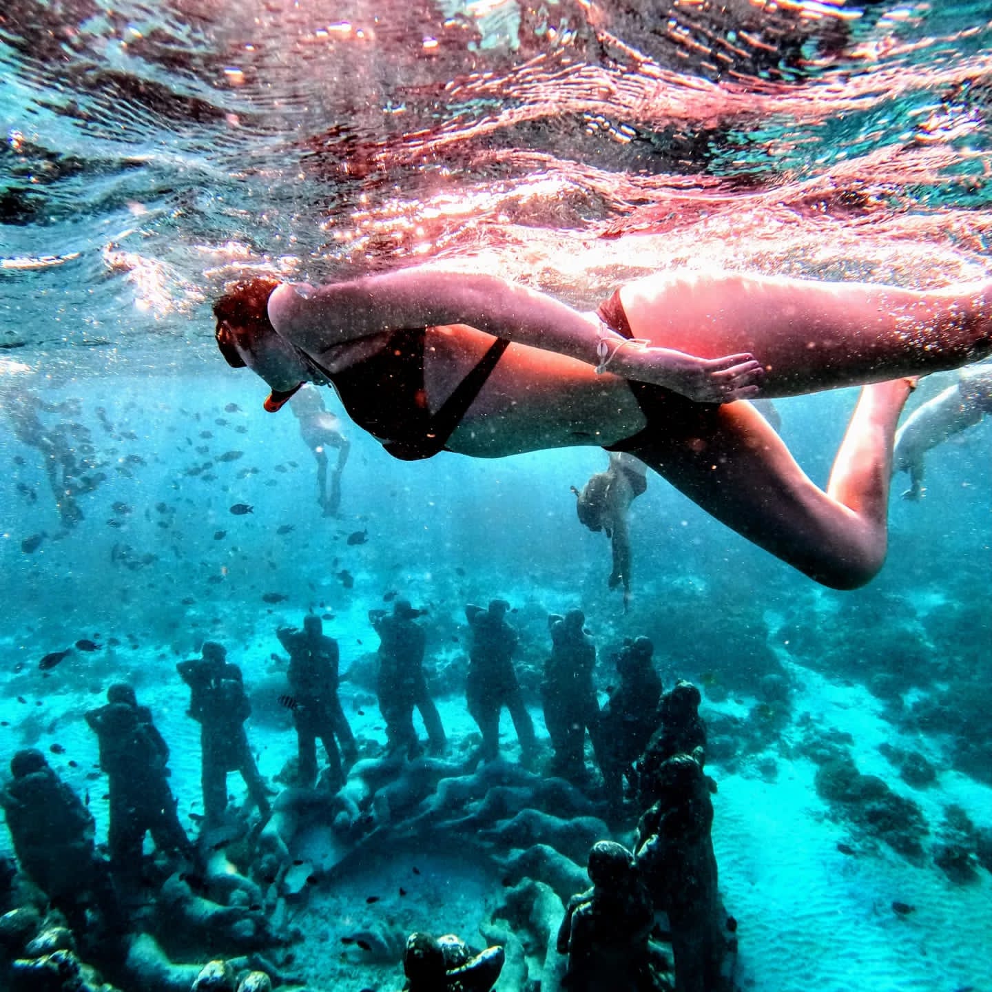 - Don’t touch. The statues are turning into a coral reef, and your sunscreeny fingers aren’t helping.