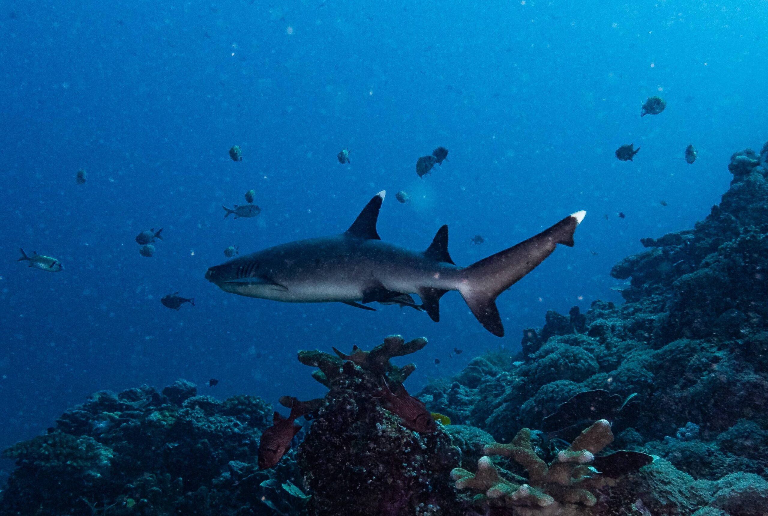 The top of the rock is covered in soft corals and fish, while the deeper sections are where pelagic encounters happen. Sharks, napoleon wrasse and massive schools are common here. When conditions are right, this dive is non-stop action from start to finish.